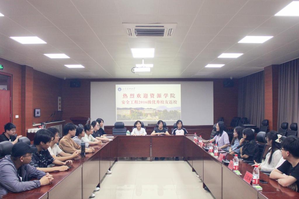 在二号楼201举办校友职业生涯规划经验分享会。资源工程系邀请邀请石汶夕、陈雪畅、王妍、王稼轩、王泽明、王世斌等6位2016级安全工程专业优秀毕业生担任分享嘉宾,学院2021级防灾减灾科学与工程专业学生代表参加。