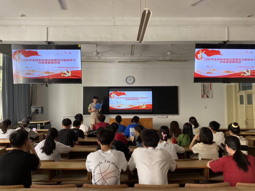 组织一次主题党日,强化毕业生党性修养。学院认真落实“三会一课”制度,采用主题党日、党课等形式,学习贯彻习近平总书记在中共中央政治局第五次集体学习时重要讲话精神,教育引导全体毕业生党员坚持以习近平新时代中国特色社会主义思想为指导,进一步增强“四个意识”、坚定“四个自信”、做到“两个维护”,自觉按照党员标准规范言行,迈好走向新岗位的第一步。