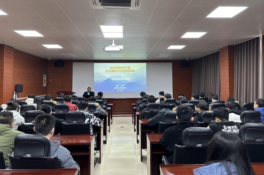 在2号楼201会议室举办“高校专利的申请及运用”专题报告会。山东专利工程有限公司技术总监兼信息研发事业部总经理、山东专利工程有限公司淄博分公司总经理王大伟做专题报告,学院2023级研究生参加。
