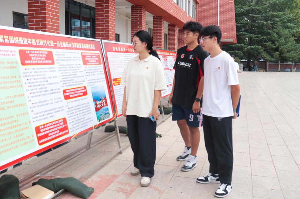 学生党员认真学习、深入研讨展板内容,将全会精神转化为推动工作高质量发展的强大动力。这一系列活动不仅提升了学生党员对全会精神的理解,也向外界展示了他们积极学习贯彻党的二十届三中全会精神的态度和行动。