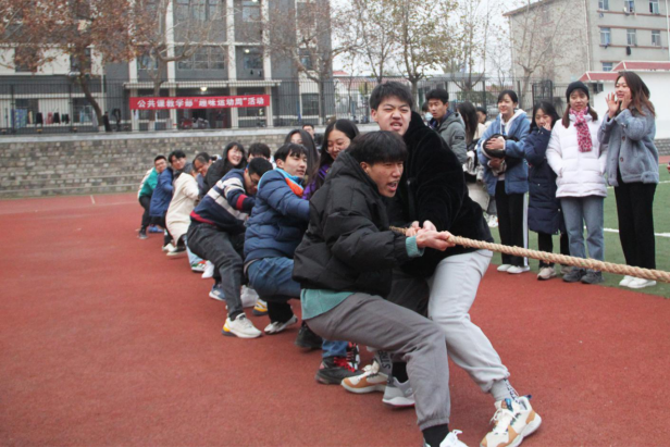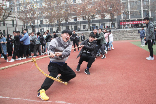 首日进行的是第一阶段的淘汰赛。备赛阶段,双方队员就已进入“战斗”状态,双手紧握麻绳,双脚用力着地,身体向后微倾。随着哨声响起,比赛正式开始。参赛队员口号震天,气势轩昂,他们卯足了劲儿拉动绳子,努力将绳子中间所系的胜利短绳移向自己的阵地。裁判员严肃、认真、公正、准确执哨,保证赛场秩序有条不紊。各班观战的同学在赛场外助阵加油,赛场上欢呼声、呐喊声此起彼伏,紧张激烈的现场氛围将比赛推向了高潮。其中,土木19-2队在整场比赛中表现出彩,参赛队员在整齐划一的“一二一二”节奏声中,团结一心,握紧绳子,重心后倾,咬紧牙关,用尽浑身力气拽动绳子,迅速赢得比赛。最终,土木19-2、工管20-7等11支队伍凭借强大的实力赢得了拔河比赛。