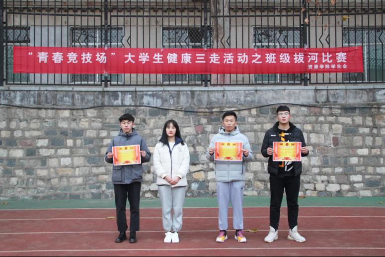 在东校园田径场举办“青春竞技场”大学生健康·三走活动之班级拔河比赛决赛暨颁奖仪式。