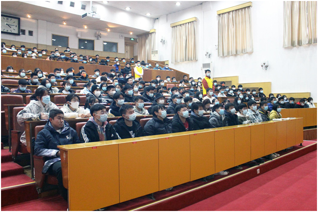 组织学院全体学生分批次在四号楼报告厅观看《保密警示教育片—筑牢“象牙塔”里的秘密防线》。
