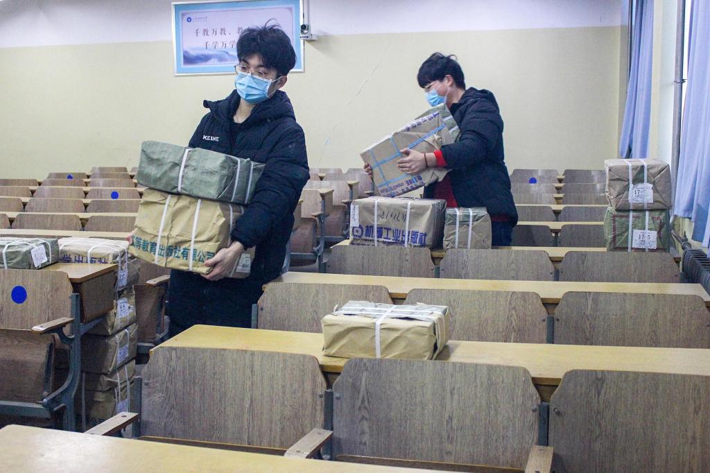 2月26日,欲漫涩 教材发放工作在5#103、5#104有序进行。