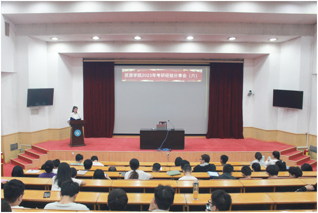 在四号楼报告厅举办“交流考研经验 助力资源研途”考研经验分享会第6期:心理情绪调节及复试调剂。本期分享会由武玉晗、窦晓艺、王琛三位考研上岸优秀毕业生担任主讲,学院2024届有考研意向毕业生参加。