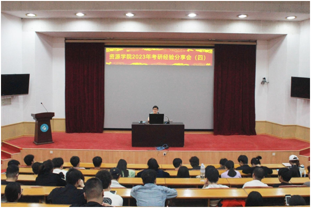 在4号楼报告厅开展“交流考研经验 助力资源研途”考研经验分享会第4期。张伟、曹晓虎两位2023届考研上岸优秀毕业生主讲,学院2024届全体毕业生参加。