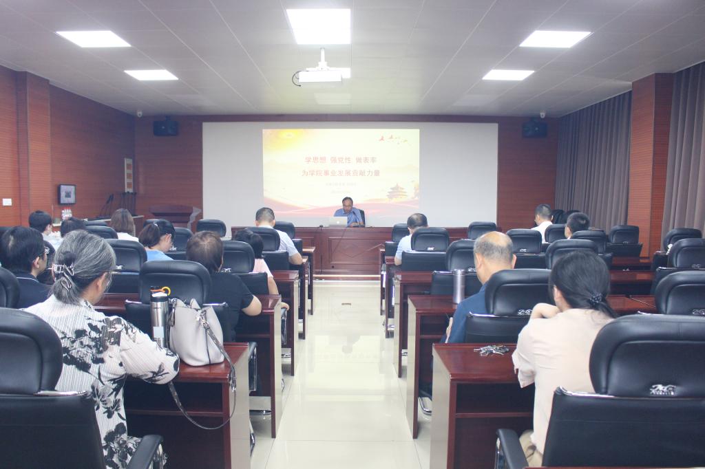党委书记高尚宇在二号楼201会议室为学院全体教工党员和学生党员代表讲授“学思想 强党性 做表率 为学院事业发展贡献力量”专题党课。
