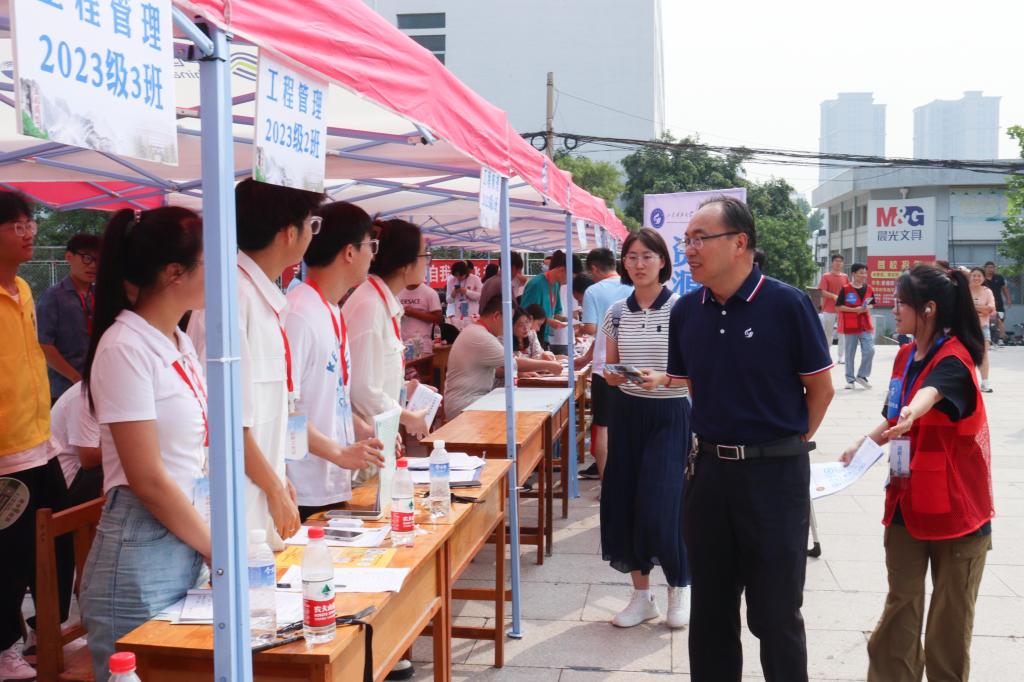 党委书记高尚宇一行前往新生报到点及服务点,与迎新志愿者们亲切交谈。高尚宇叮嘱迎新工作人员,要努力用周到、细心、贴心的服务让同学们感受温暖和关怀,确保迎新工作学生喜欢、家长满意、学校放心。