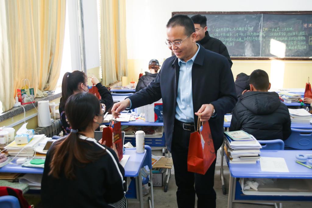 党委副书记、副院长程家国带领辅导员在考研自习室为2024届考研学子送去“福袋”,送上最美好的祝愿。