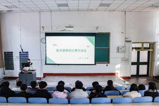 在1A107举办数学建模竞赛交流会,各年级数学建模爱好者积极参加。