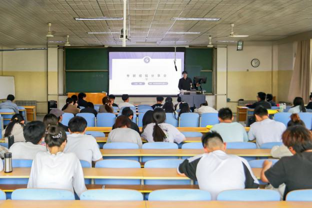 会上,两位主讲人立足自身实际,重点围绕报考院校选择、专业课复习两方面进行分享。宫灿结合自身备考经历,重点分享了正确选择院校的方法。他建议同学们要结合自身兴趣、专业特长以及各院校历年报录比例等多重因素进行综合考量,进而明确适合自己的发展方向和报考院校。在应考方面,魏智重点讲解了备考的“三轮复习法”,着重指明了做好科学合理的复习规划与保持良好稳定心态的重要性。他向同学们推荐了实用的备考资料和线上学习工具,并强调要在巩固知识基础的同时加强真题训练,做到双管齐下,齐头并进。