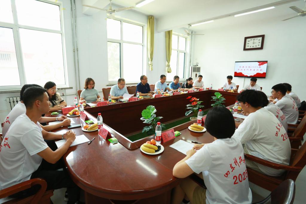 在1A214召开2025届毕业生代表座谈会。学院党委书记高尚宇、学院班子成员、团委书记和毕业生辅导员等与毕业生代表面对面交流,在温情对话中共话成长、共寄未来。