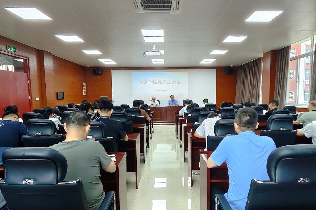 7月18日,欲漫涩 在2号楼201会议室召开全体教职工大会,总结上学期工作,部署暑期及新学期重点工作。会议由校区领导贾宏俊、学院党委书记高尚宇主持,全体教职工参加。