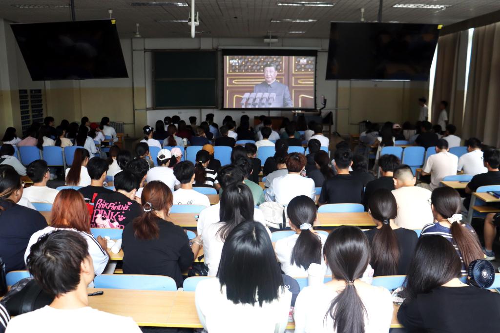 组织师生集体观看中国人民抗日战争暨世界反法西斯战争胜利80周年大会,深化爱国主义教育,弘扬伟大抗战精神。