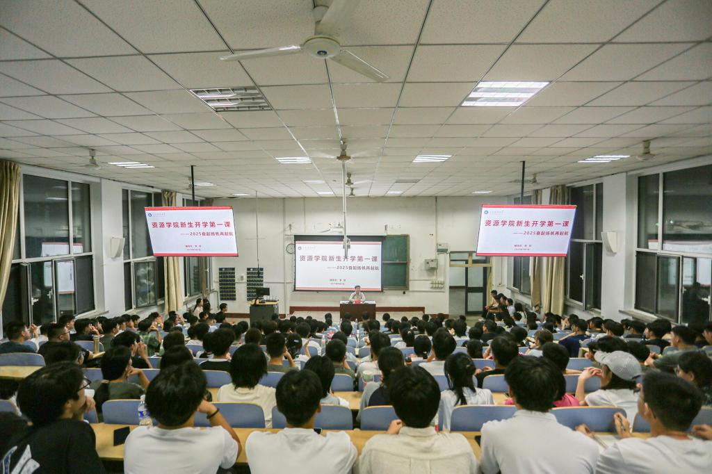 在1A107举行2025级新生开学第一课,新生辅导员李欢担任主讲,学院全体2025级本科新生参加。