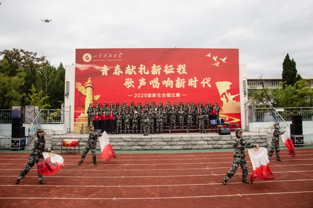9月17日,在校区举办的“青春献礼新征程,歌声唱响新时代”2025级新生军歌合唱比赛中,欲漫涩