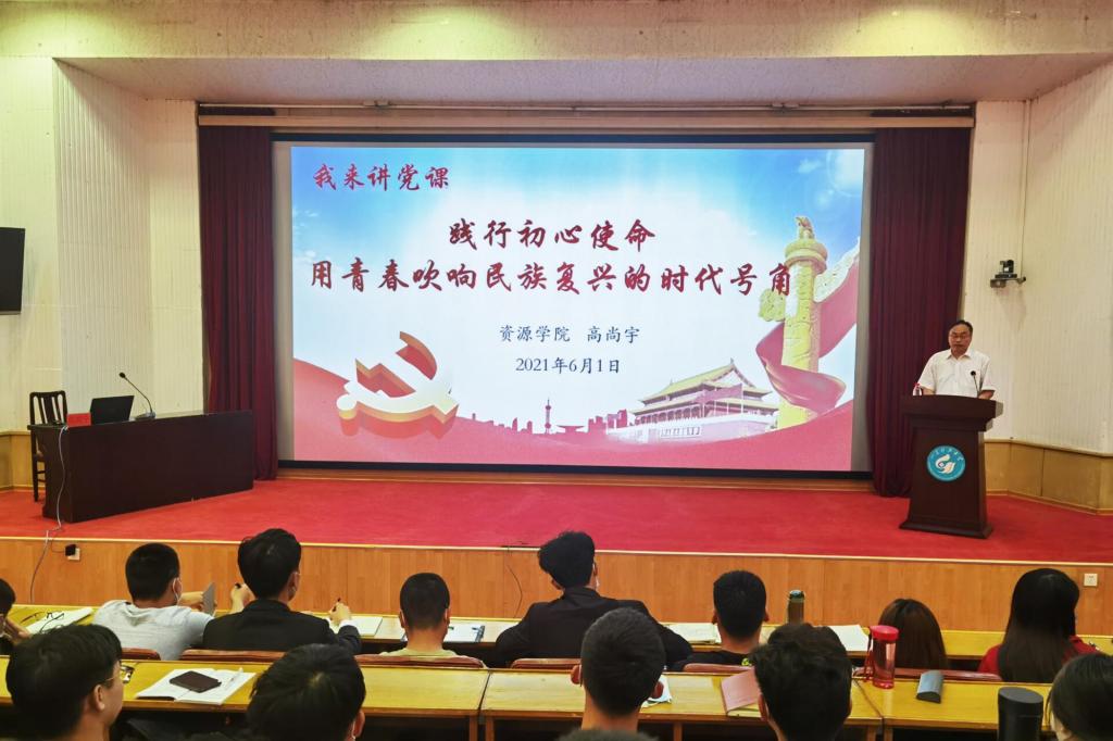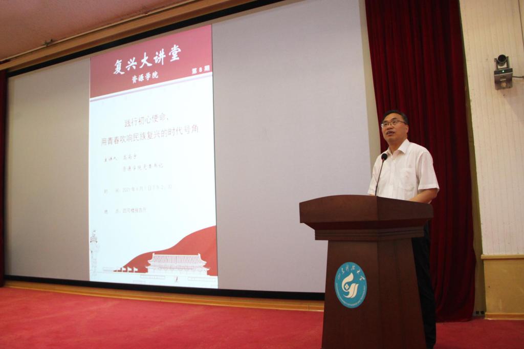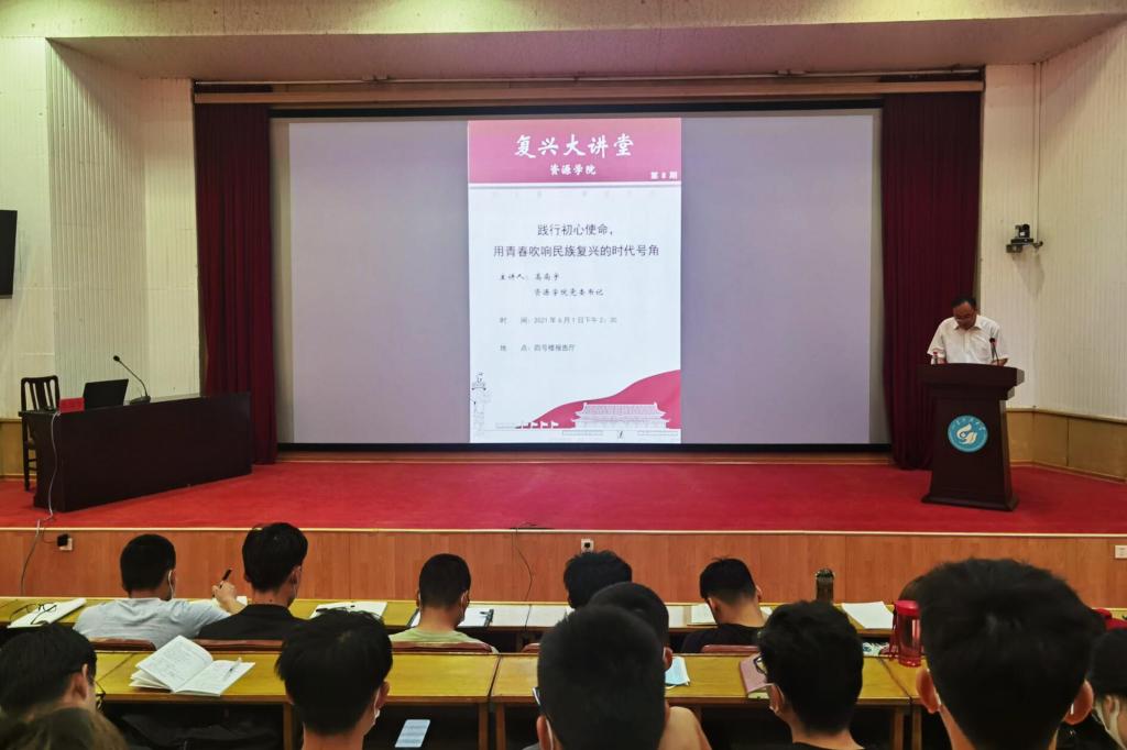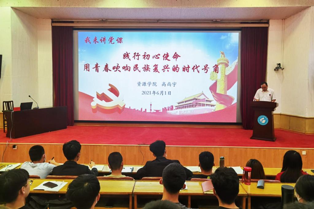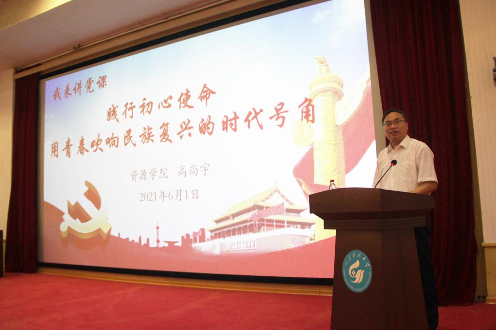 党委书记高尚宇在四号楼报告厅为学院学生党员讲授“践行初心使命,用青春吹响民族复兴的时代号角”专题党课。