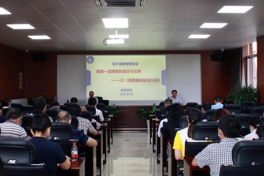 邀请国家精品课程建设者、长江大学毛宁波教授,围绕“国家一流课程的建设与应用”为学院全体教师进行经验介绍。院长王清标主持会议。