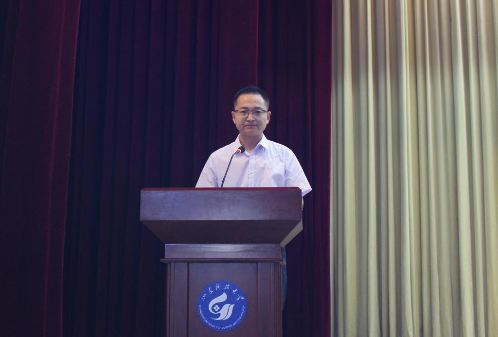 会上,院长王清标代表学院向2021级新生表示诚挚的祝贺和热烈的欢迎。从时代发展与变革的宏观角度向初入校园的同学们传递殷殷寄语。他指出,同学们要将科大“惟真求新”的校训作为自身成长道路上的精神坐标,立志为学,夯实专业基础,培养高尚品格,积淀丰厚学养,开拓新境界。针对即将开始的大学生活,王清标对新生提出几点要求:一是努力学习,拓展知识的广度;二是注重科技创新,增加知识的深度;三是与人为善,增强情感的温度;四是养成习惯,锤炼意志的强度;五是海纳百川,增大胸怀的大度;六是培养科学思维,增强辩证的角度;七是全球观念,提高视野的高度。最后,王清标表示,希望同学们身在泰山脚下学习深造,思想在泰山之巅锤炼,有总揽全局、高瞻远瞩的魄力与担当,求真学问、练真本领,发扬“山海泉”精神,做勇担时代使命的新青年。