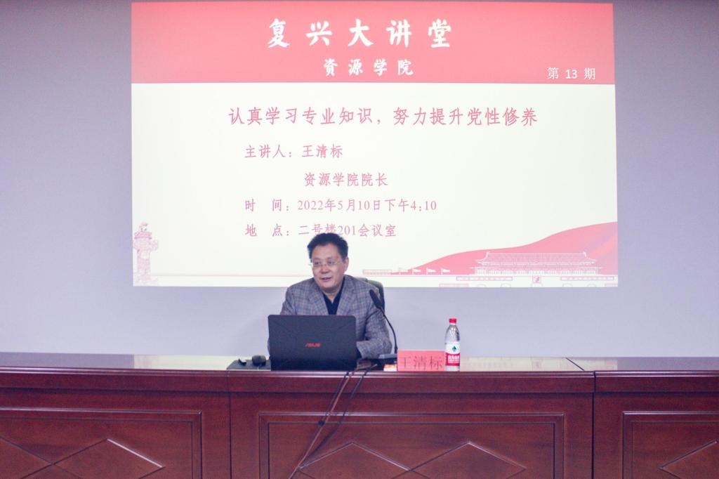 院长王清标教授在2号楼201会议室为学院第36期发展对象讲授“认真学习专业知识,努力提升党性修养”专题党课。