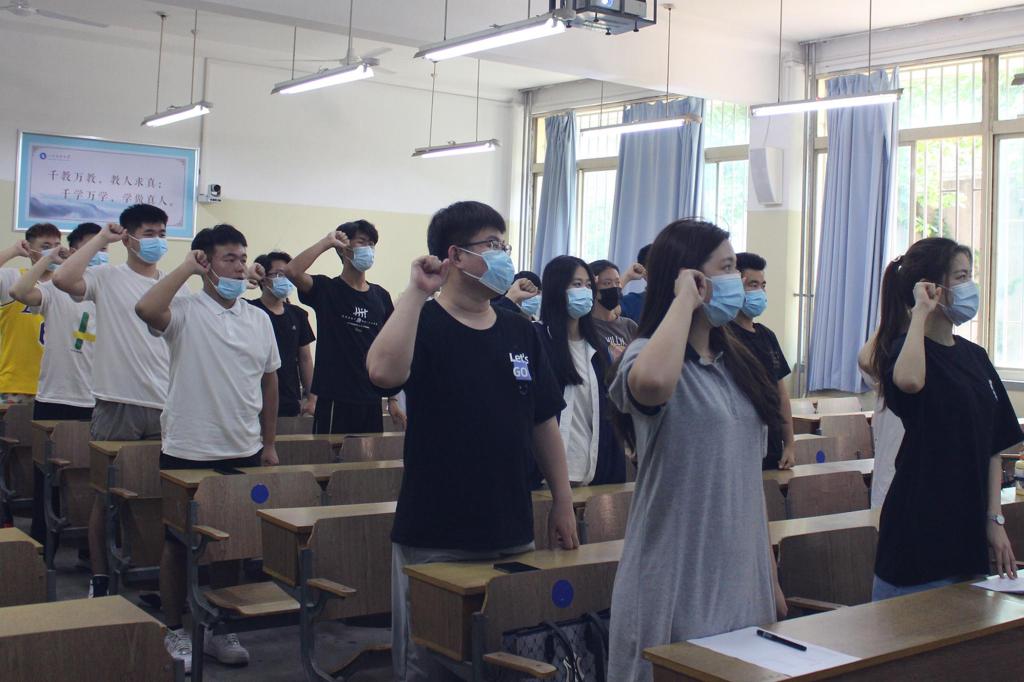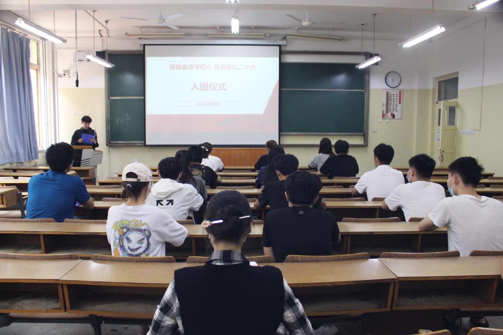 仪式在国歌声中拉开序幕。“我志愿加入中国共产主义青年团,坚决拥护中国共产党的领导,遵守团的章程……”金色团徽硕硕放彩,红艳团旗熠熠生辉,在领誓人的带领下,团员们紧握右拳、语气铿锵,面对团旗庄严宣誓。老团员代表刘锦涛、团支书代表孙慧正分别在仪式上发言。
