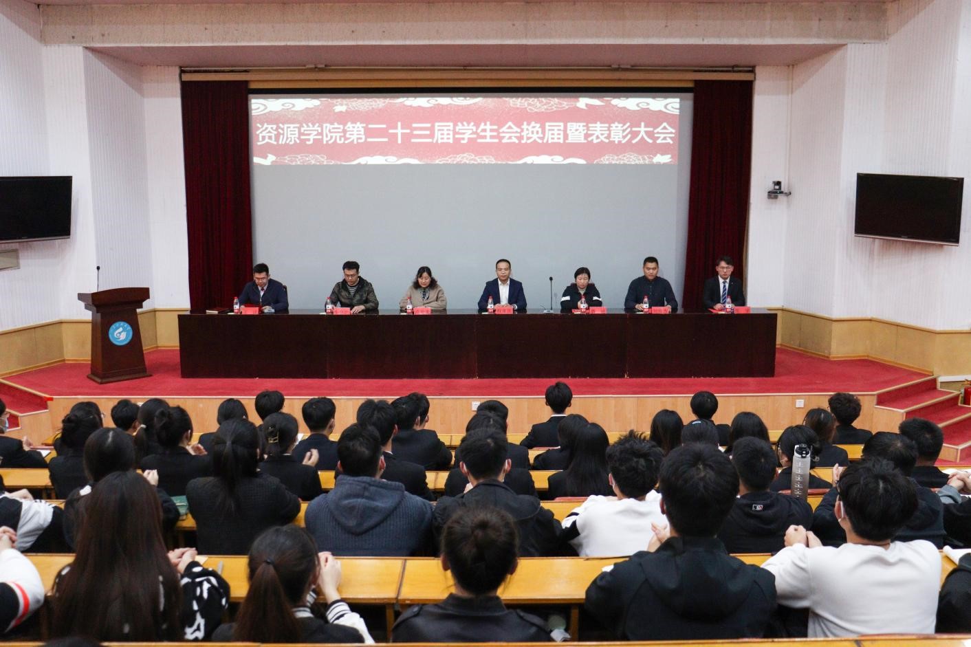 在四号楼报告厅隆重召开第二十三届学生会换届暨表彰大会。学院党委副书记、副院长程家国、全体辅导员出席大会,学生会全体成员及学院主要学生干部参会。大会由辅导员、学生会秘书长王淦主持。