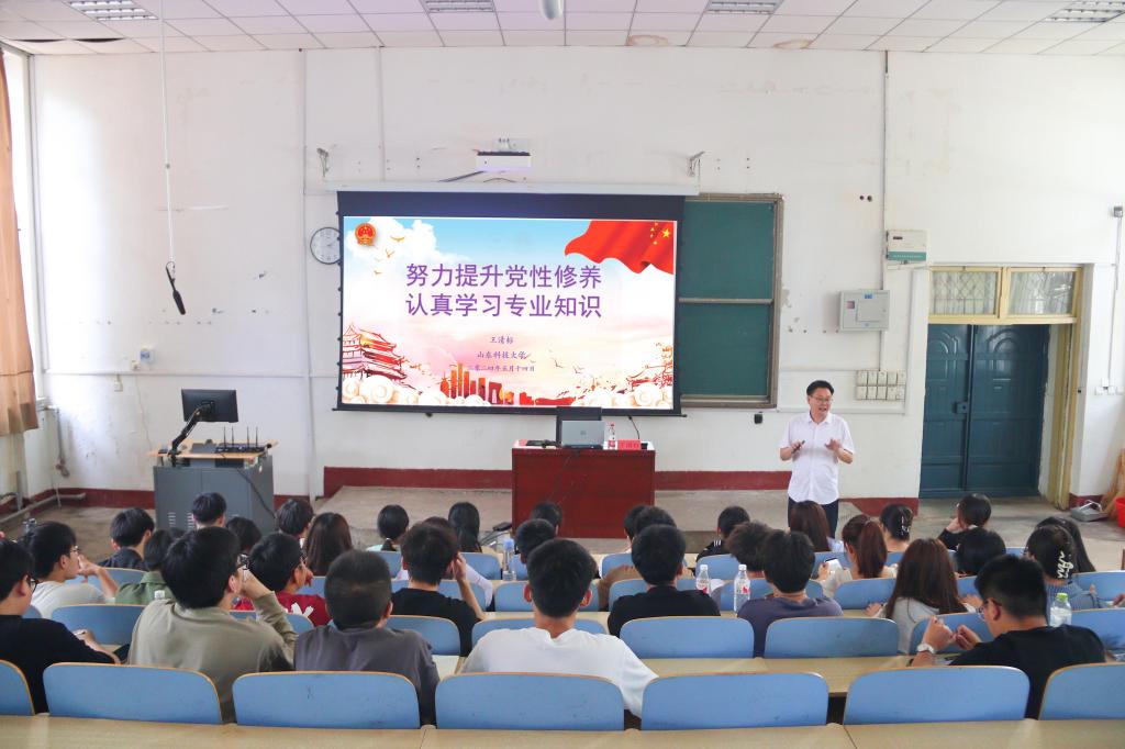院长王清标在1A107为学院第40期入党积极分子讲授“努力提升党性修养,认真学习专业知识”专题党课。