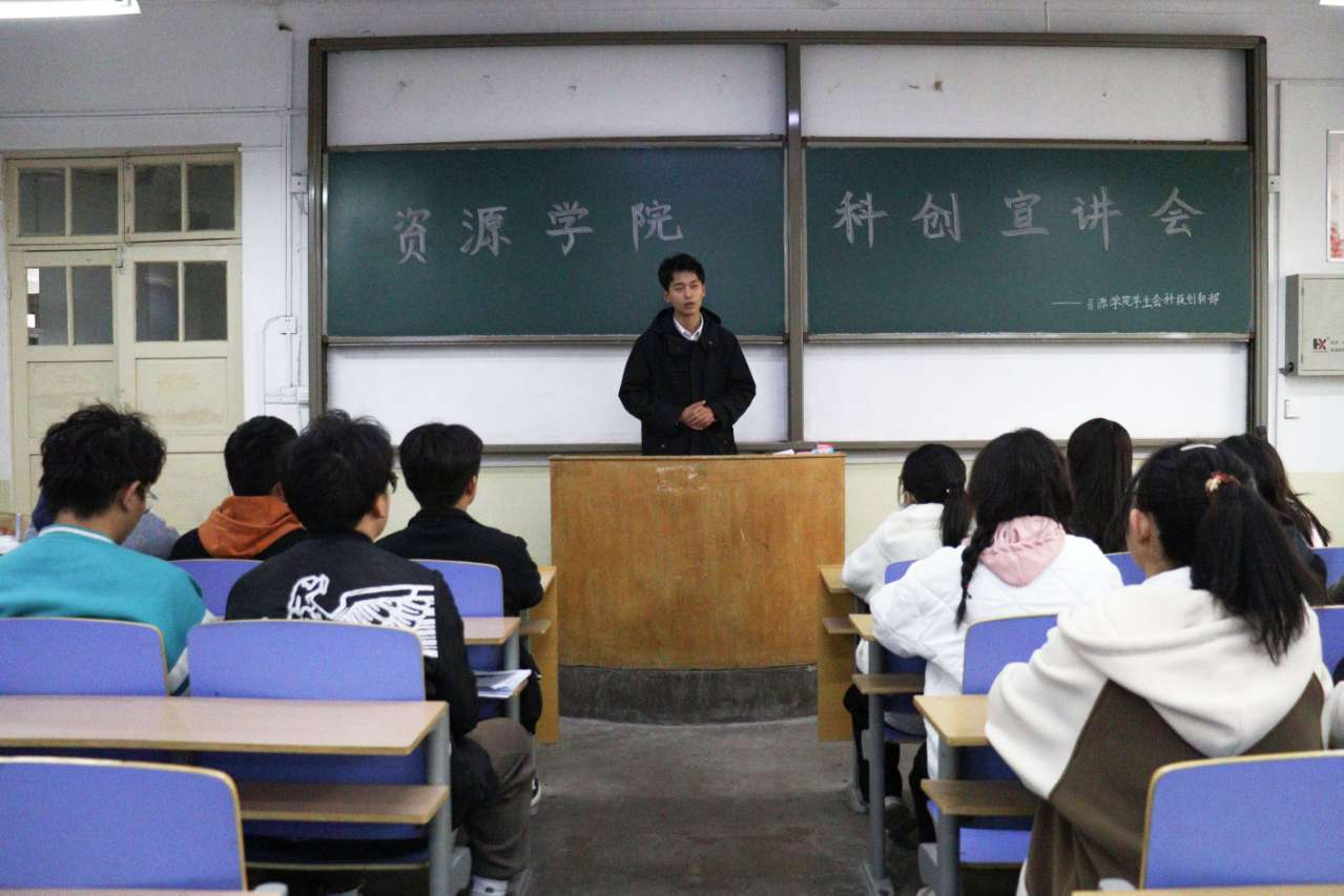 在3#401举办科技创新宣讲会,学生会主席团成员及学院科技创新骨干担任主讲,2022级学生积极参加。
