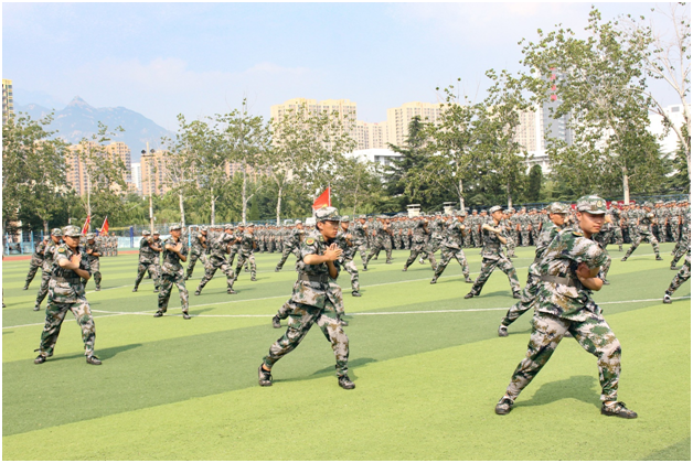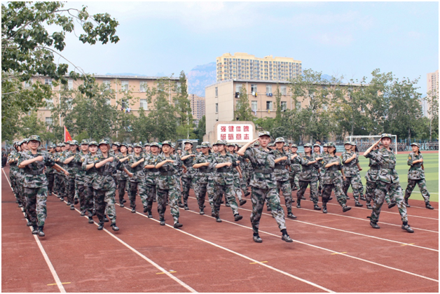 受阅方队迈着整齐的步伐,依次经过主席台前接受检阅,铿锵的口号喊出了资源学子的阳光风采,飒爽的英姿展现出当代大学生的青春朝气。随后,资源新生用军体拳表演汇报了他们一周以来的军训成果。当教官发出指令后,全体同学迅速进入状态,队列整齐划一,一招一式刚劲有力,一气呵成。在平日的训练中,资源新生们恪守纪律,吃苦耐劳,一丝不苟地完成了军训任务,从最初的懵懂到今日的坚毅,军训见证了他们的成长。