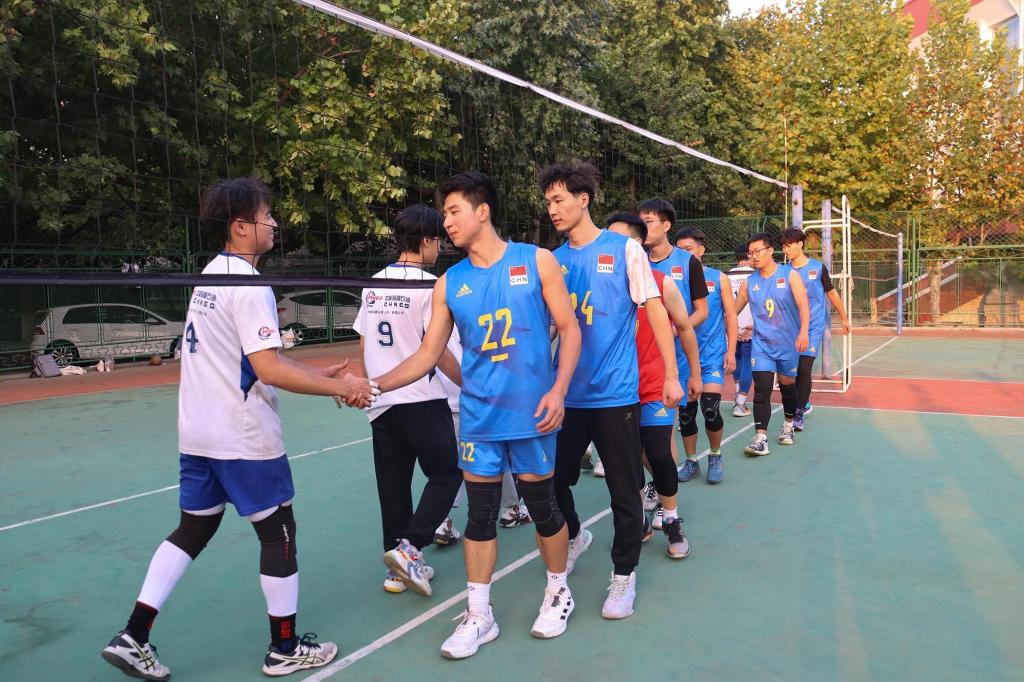 10月7日,校区大学生排球联赛火热进行中。东校园排球场,欲漫涩 男排在与财经学院男排的对决中再下一城。