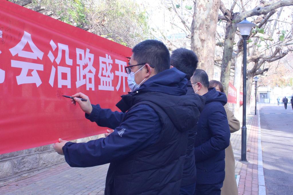 一朝凛冬至,考研正当时。活动前,学院有序组织人员开展悬挂工作,确保平整、美观,位置适宜。活动中,学院领导与辅导员以笔笺情,在横幅上为考研学子写下殷殷鼓励;同学们提笔书写祝愿,为日夜备考的学长学姐们送上真挚祝福;考研学子纷纷驻足观点、拍照留念,喜悦之情溢于言表,深受振奋与鼓舞。