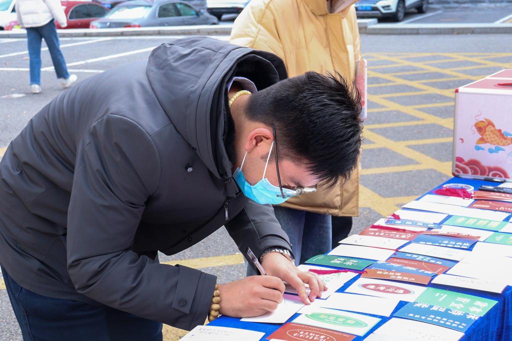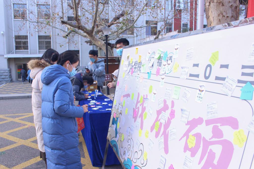 精心组织,用心策划,设计了包含“七个一”在内的考研大礼包,即装满一个福袋、送上一份祝福、领取一块祝福牌、留下一张合影、抽取一次盲盒、摆放一对展板、悬挂一批励志条幅。