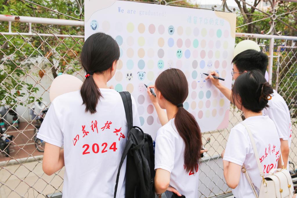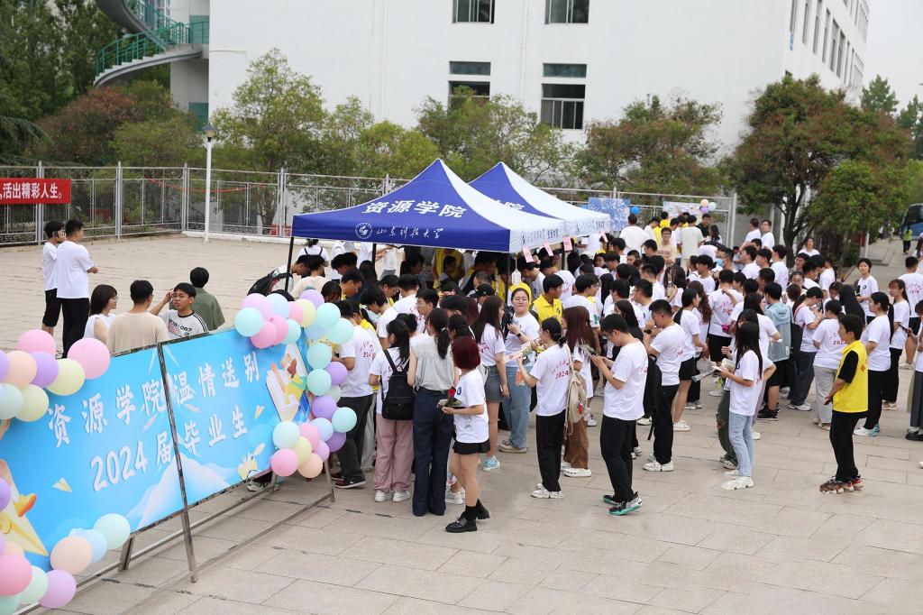 在西校园礼堂前举办“欢送2024届毕业生”系列活动,表达惜别之情,为毕业生送上最真挚的祝福。