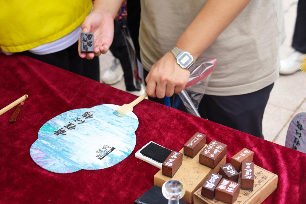 盖章、勾勒、泼墨、晕染……当漆扇浸入水中,一幅幅精美的画面在扇面上栩栩展现,这是漆染工艺手工染制而成的艺术品,更是浓浓的离别深情。漆扇上呈现的“前程似锦”“无忧”“多喜乐,长平安”等祝福语,饱含着对毕业生的殷切期许和美好祝愿。