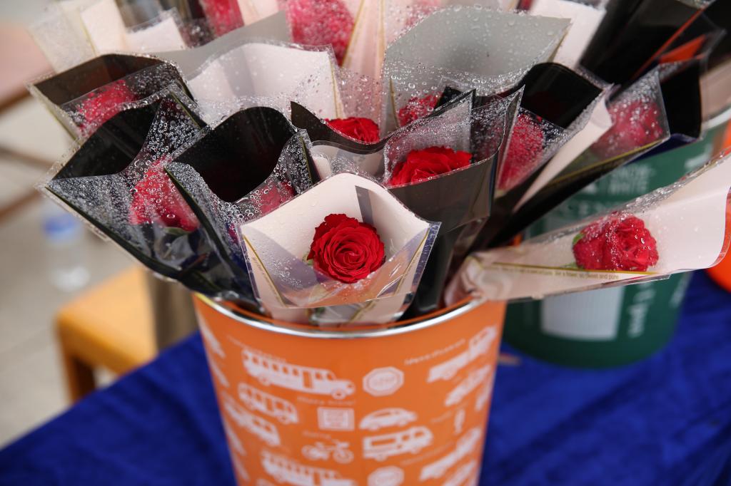 学院学生会工作人员将含苞待放的玫瑰,用精美的包装纸包装成束,意寓诚挚的祝愿与期望,送给每一位毕业生。另一场地,毕业生绘制专属笑脸,或莞尔,或开怀,将快乐与自信尽情展现在画板之上,为毕业离场写下最靓丽的一笔。一束束鲜花,一幅幅画卷,饱含了学院对毕业生“一花相伴,一路繁花”的殷切期望和衷心祝愿。