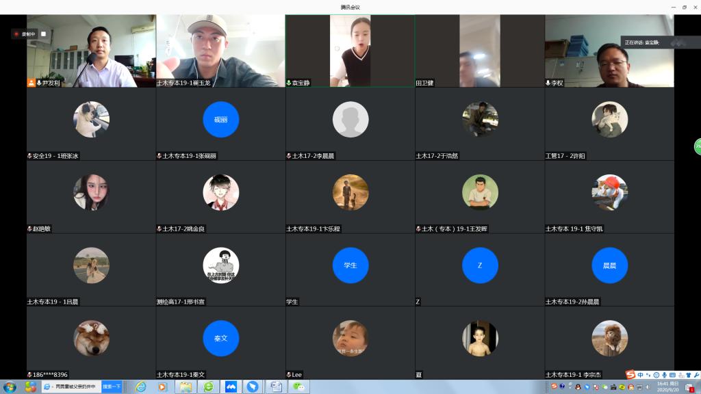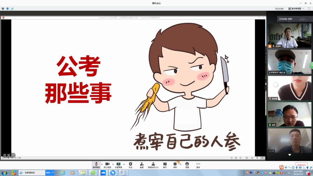 通过腾讯会议线上举办公务员及事业编考试经验分享会。会议由辅导员尹发利主持,邀请优秀校友李权、袁宝静担任主讲。