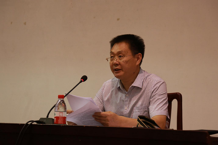 于7月15日在4号楼报告厅召开分会场会议,学院全体教师参加,会议由学院副院长秦广鹏主持。