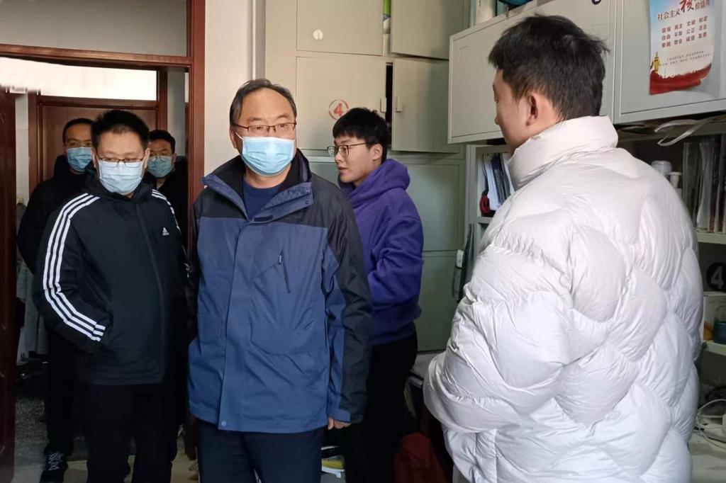 在学生宿舍,高尚宇与同学们亲切交流,询问同学们近期学习、生活等情况,勉励同学们要不断提高自律能力,在积极做好防疫的同时,充分安排好现阶段的学习生活,做到“防疫学业”兼顾。王清标对学生线上学习情况进行检查,了解了线上学习效果、线上教学互动等情况,要求同学们优质高效完成线上学习任务,积极营造良好的学习氛围。