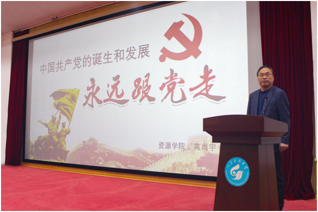 党委书记高尚宇在四号楼报告厅为学院第35期入党积极分子讲授“中国共产党的诞生和发展”专题党课。