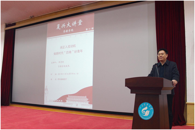 院长王清标为学院全体学生党员讲授“端正入党动机,做新时代‘四有’好青年”专题党课。