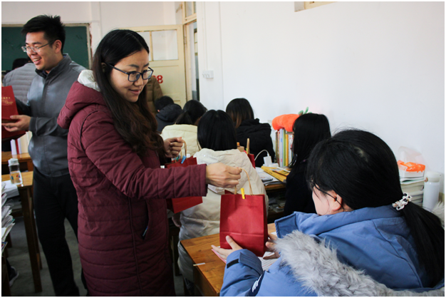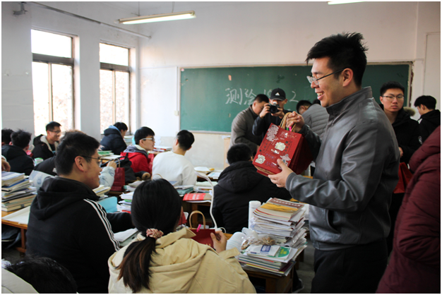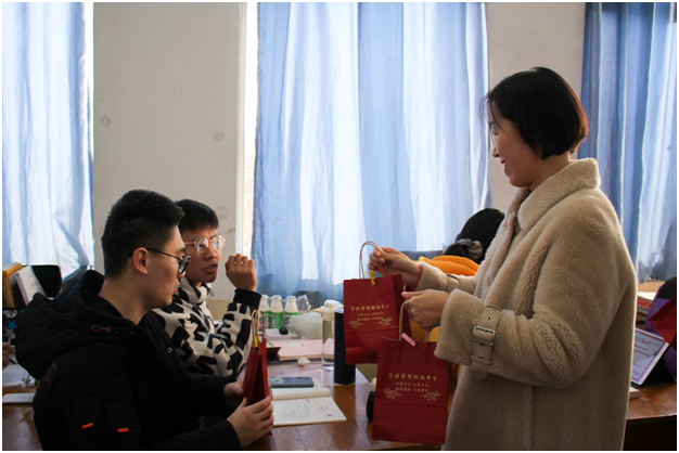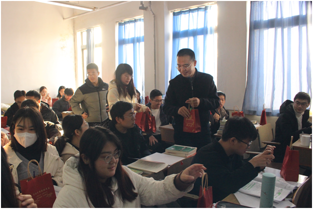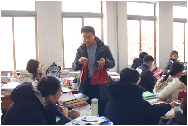 “学院给大家送上福袋,希望这些小小的礼物能给大家缓解压力,鼓劲加油。请大家相信,你们绝不是孤军奋战!”学院党委副书记程家国亲手将一个个福袋递到考研学子手中,向考研学子表示慰问、鼓励和期望。
