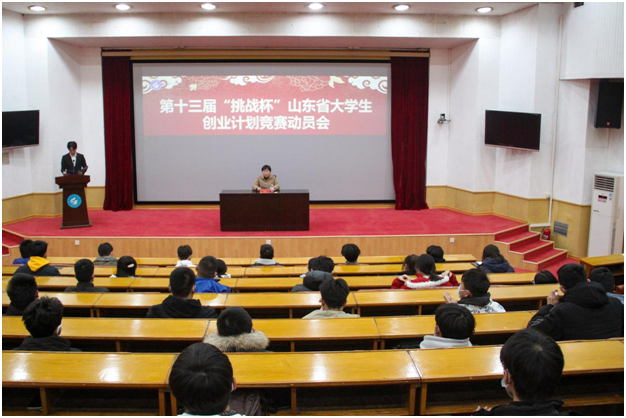 在四号楼报告厅召开第十三届“挑战杯”山东省大学生创业计划竞赛动员会。会议由学院学生会科技创新部负责人乔利民主持,学院团委书记、学工办主任洒艳出席会议并讲话,2019级、2020级、2021级学生代表参加。