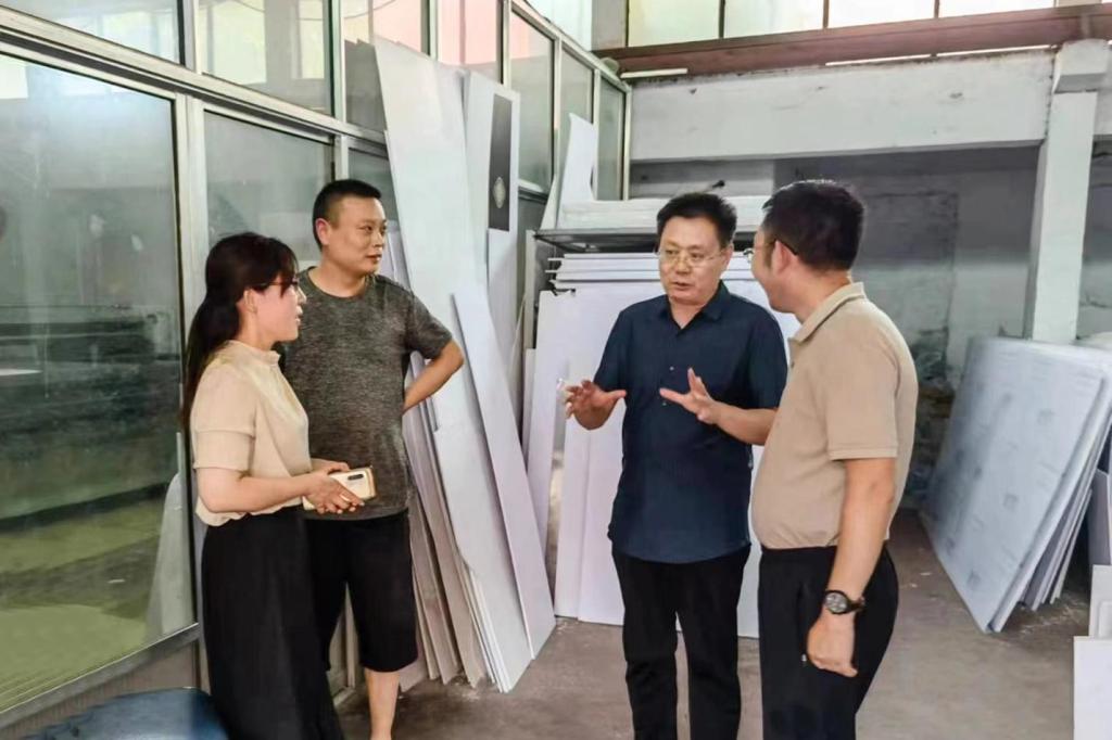 王清标一行参观了企业车间,现场交流了装饰工程、防腐工程等生产工艺。结合交流实际,王清标介绍了欲漫涩