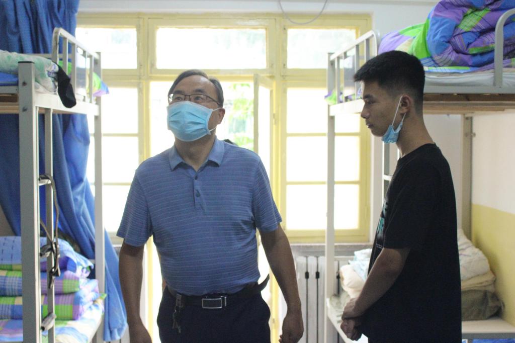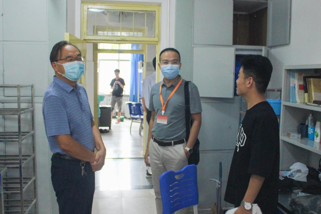 步入新生宿舍楼,领导调研了空调等宿舍新增配套设施的使用情况,亲切询问新生假期生活及来校感受。高尚宇叮嘱新生要加强自我防护,遵守学院各项防疫规定,认真做好在校期间核酸检测“一日一检”,提高安全防范意识,确保人身财产安全。
