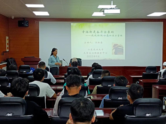邀请山东农业大学大学生心理健康教育中心主任、国家二级心理咨询师王红菊为2022级研究生作心理健康教育报告,学院副院长李楠主持。