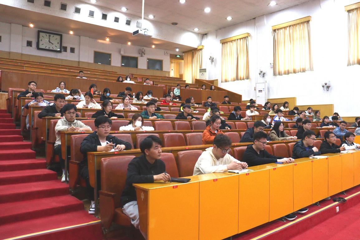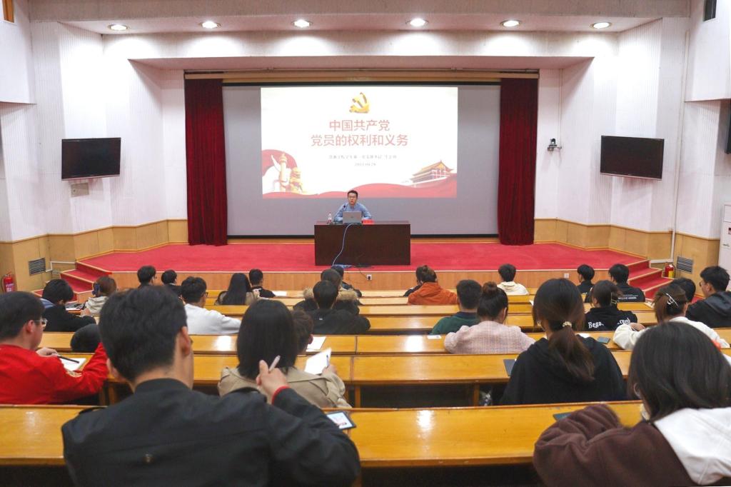 辅导员、学生第一党支部书记牛会功在四号楼报告厅为学院第38期入党积极分子讲授“中国共产党党员的权利和义务”专题党课。