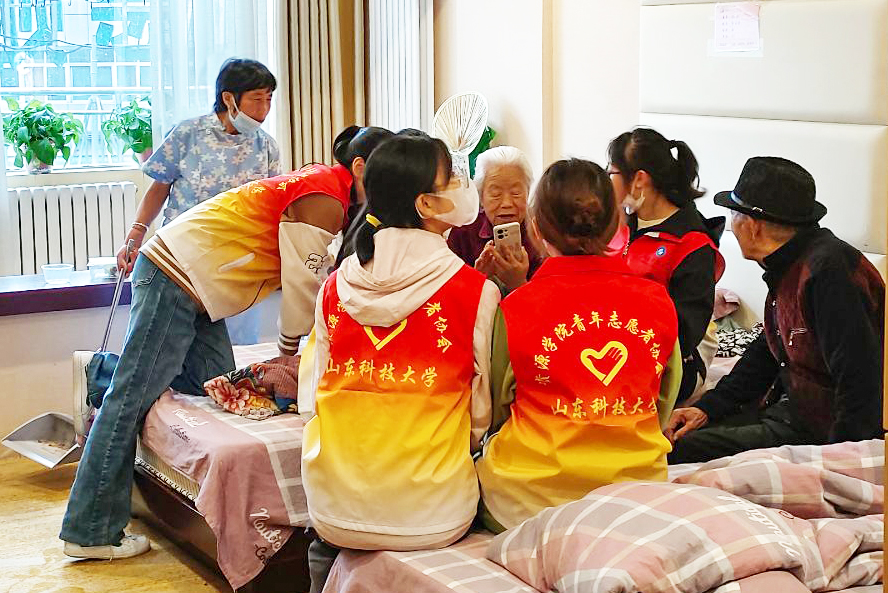 在养老服务中心,青年志愿者们与老人亲切交谈,倾听老人们讲过去的故事,和老人们一起唠家常,了解老人们的饮食起居、身体状态、养老生活等情况。志愿者帮助老人整理房间、清洗衣物、打扫卫生,为老人们送上暖心服务,助力养老服务中心为老人营造舒适、整洁的居住环境。志愿者热情洋溢、爱心满满,老人们脸上洋溢着幸福的笑容。