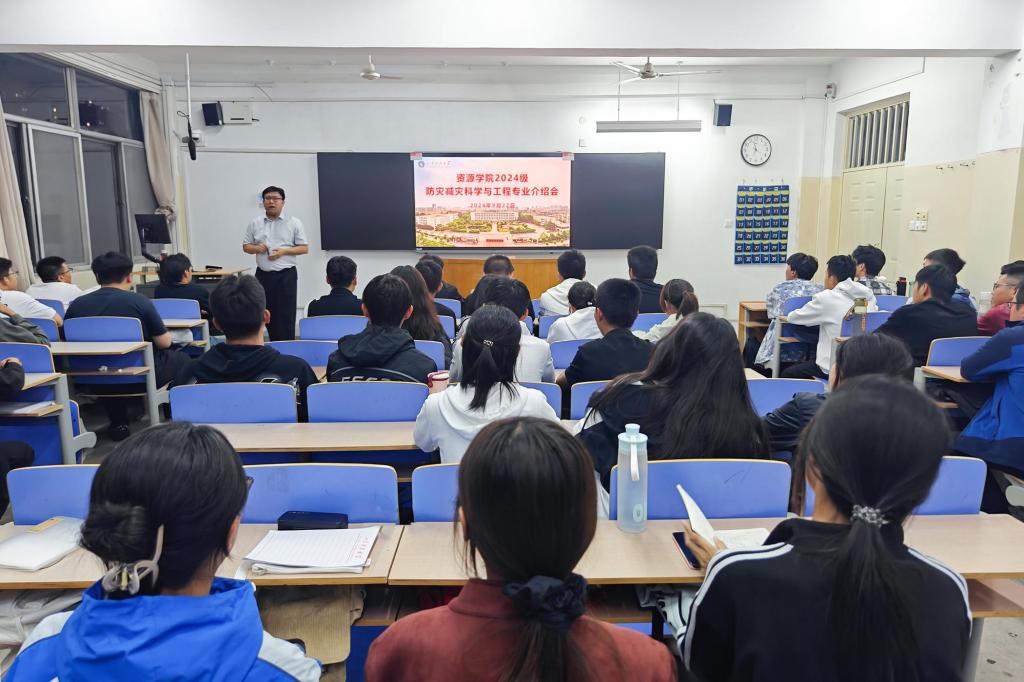 召开2024级新生防灾减灾科学与工程专业介绍会,防灾减灾工程系主任张培鹏副教授担任主讲,2024级防灾减灾科学与工程专业学生参加。