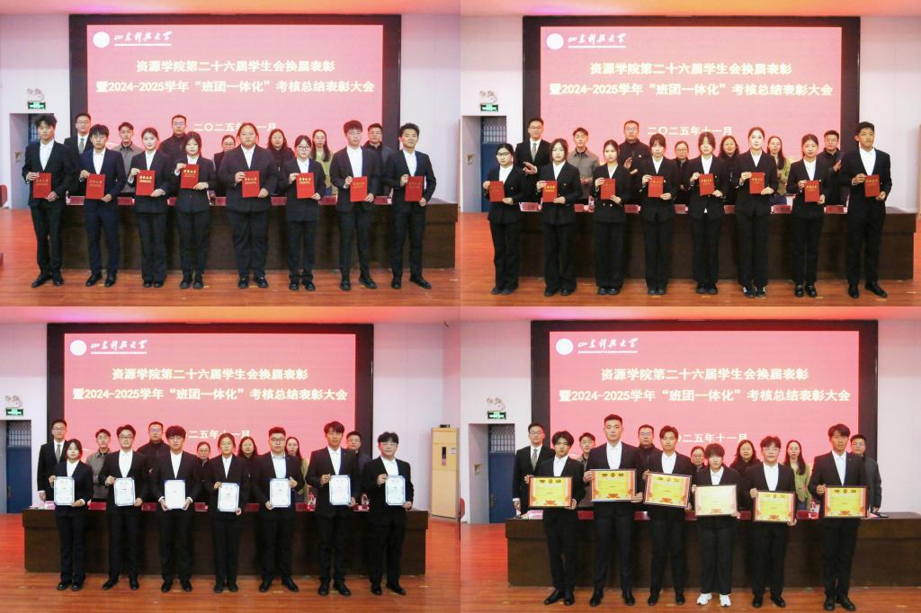 2024-2025学年“班团一体化”考核工作先进集体的决定》。在热烈的掌声中,受表彰的学生会优秀干部、优秀志愿者代表及先进集体代表依次登台领奖。