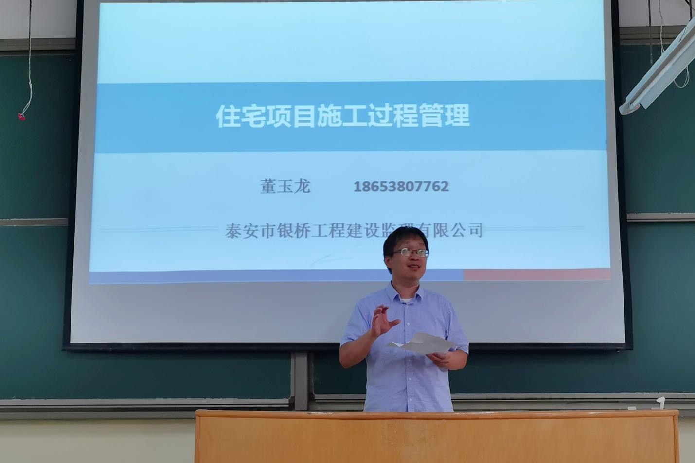 邀请国家注册监理工程师、高级工程师、山东省评标专家董玉龙在5#306开展《住宅项目施工过程管理》专家讲座。讲座由学院实验中心陈新老师主持,资源学子积极参加。